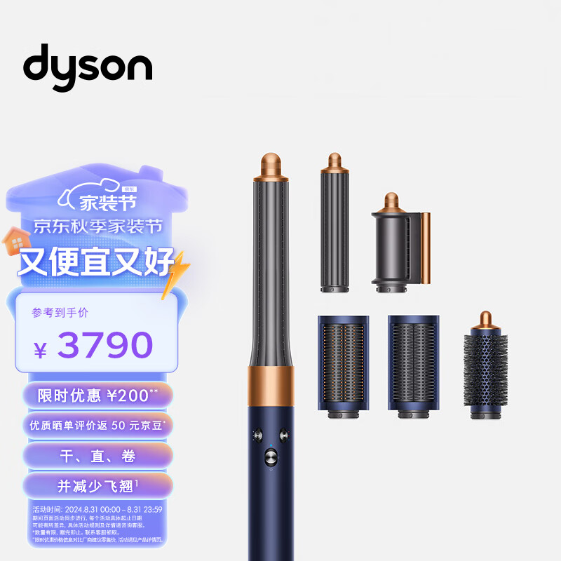 戴森(DYSON)多功能美发棒 Airwrap Complete空气卷发棒 多功能合一 旗舰套装 藏青铜色 长发版价格:3990.00元!