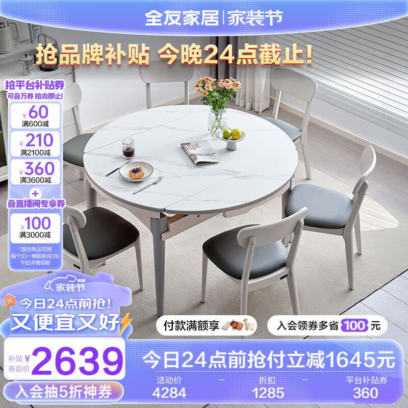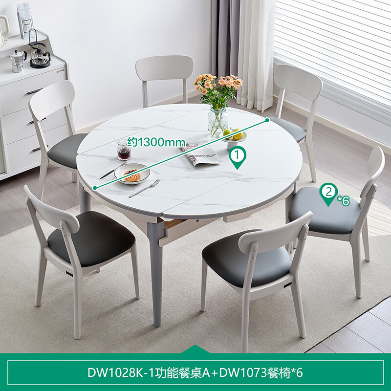 全友家居 现代简约岩板餐桌椅组合方圆两用收缩餐桌餐厅吃饭桌DW1028价格:4284.29元!