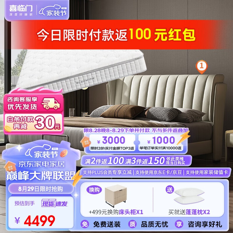 喜临门头层牛皮软床 乳胶独袋床垫 维森pro+白骑士plus 1.8x2米价格:5299.00元!