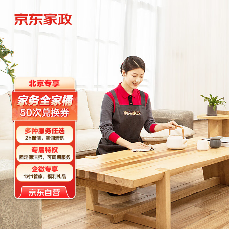 京东家政 2小时50次家务全家桶电子兑换券 家政保洁服务上门服务 限北京使用价格:5999.00元!