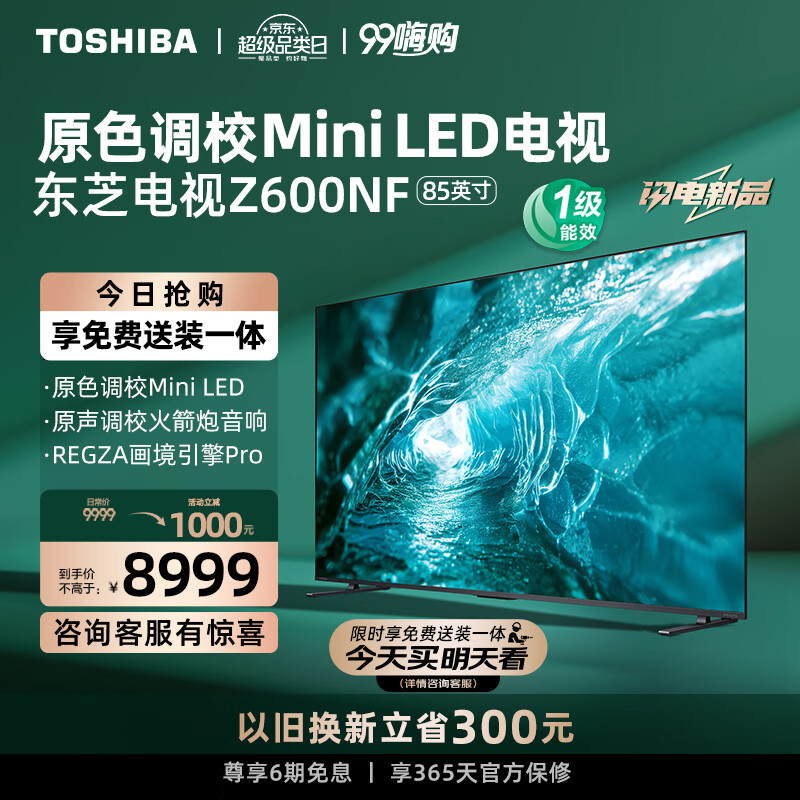 东芝电视85Z600NF 85英寸 原色调校Mini LED 火箭炮音响 4K144Hz超清液晶智能平板游戏电视机 以旧换新价格:8999.00元!