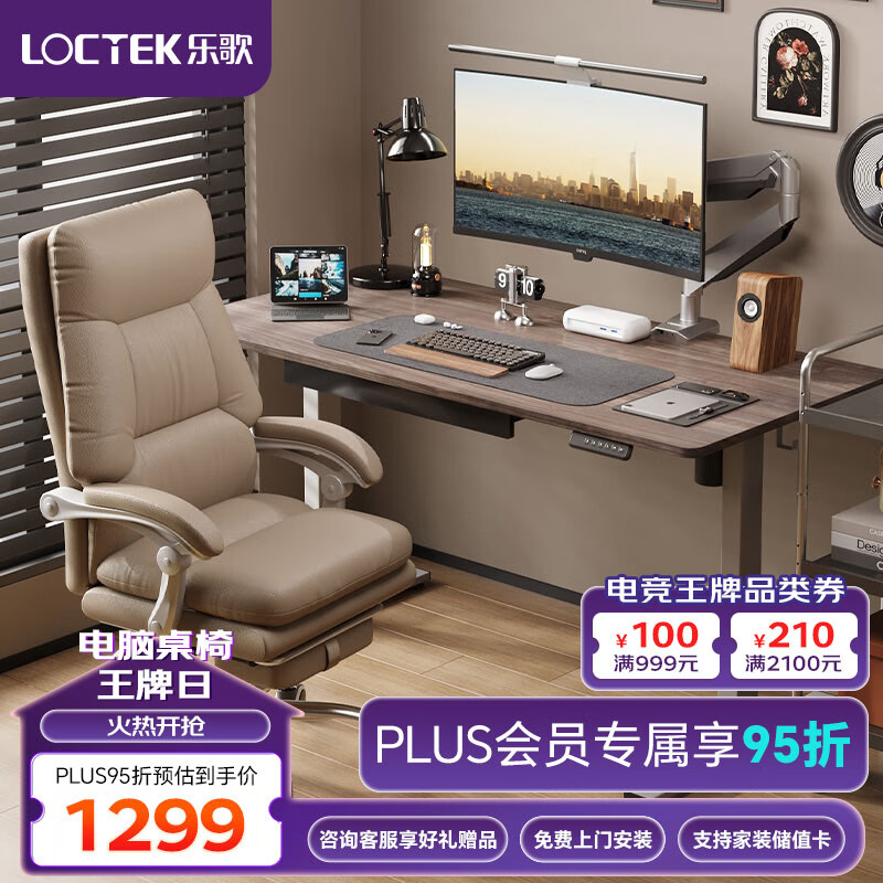 乐歌电动升降电脑桌站立式书桌家用写字桌青春派E2灰胡桃木色1.6m桌价格:1419.00元!