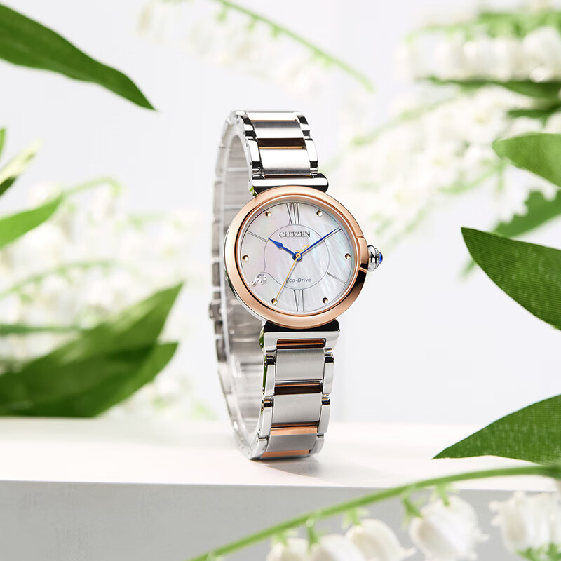 西铁城(CITIZEN)手表女日韩表光动能贝母表盘精致钢带时尚送礼物EM1074-82D价格:2800.00元!