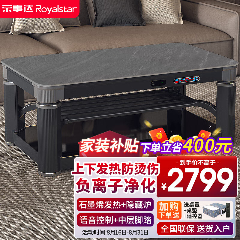 荣事达电暖桌1.6米石墨烯发热烤火茶几带语音控制升降取暖器家用电暖炉取暖桌长方形餐桌烤火桌RC-C13价格:3199.00元!