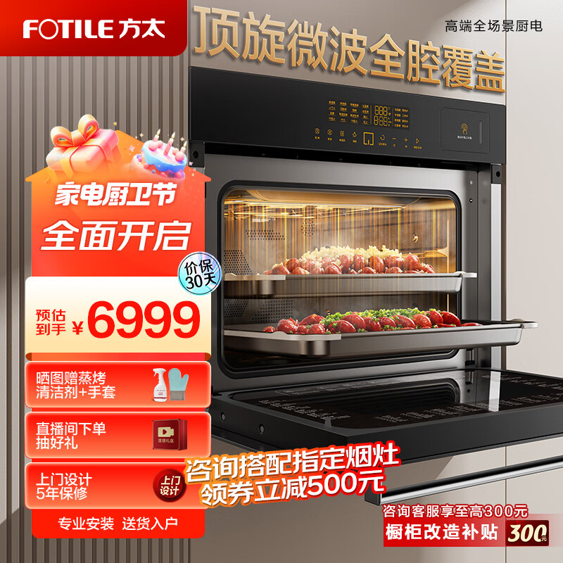 方太嵌入式蒸烤箱一体机微蒸烤炸一体机 APP智控44L大容量多功能家用蒸箱烤箱空气炸全腔微波炉02-G1.i价格:6999.00元!