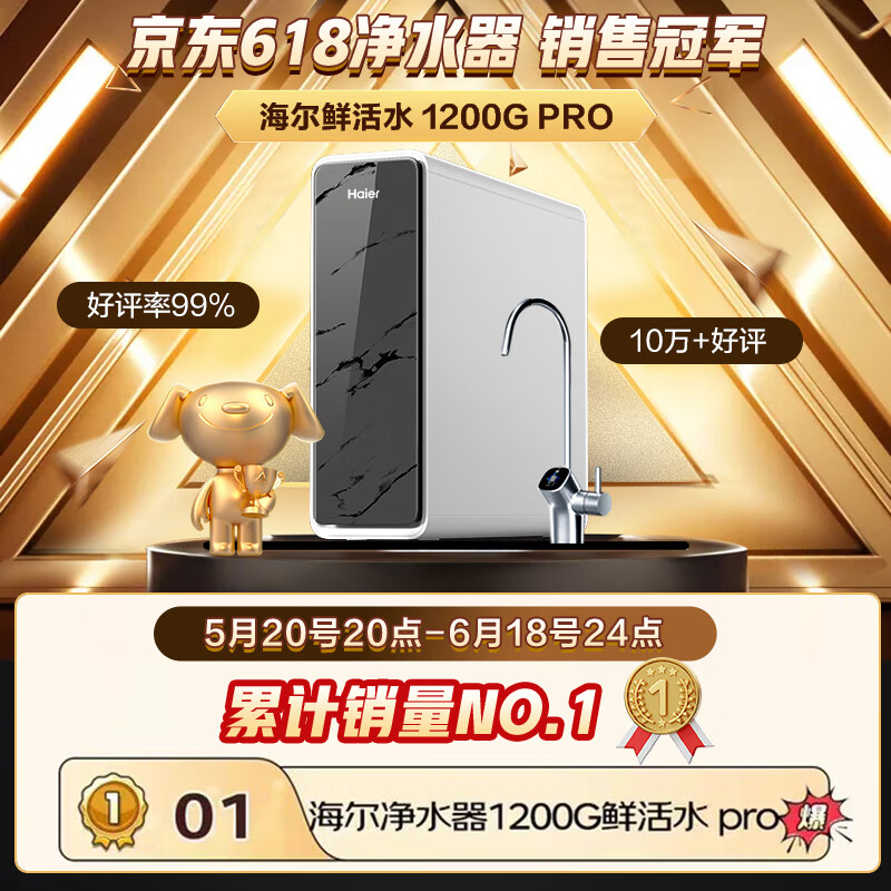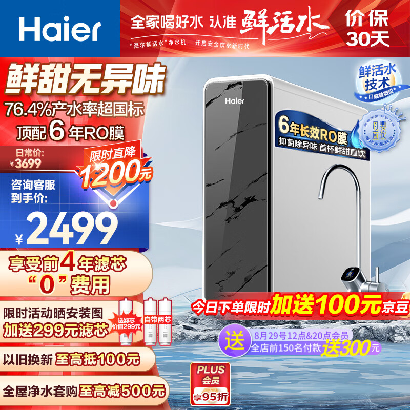 海尔(Haier)【鲜活水系列】1200G pro家用6年RO反渗透净水器大通量厨下净水机直饮3.48L/分钟HKC3000-R793D2U1价格:2699.00元!