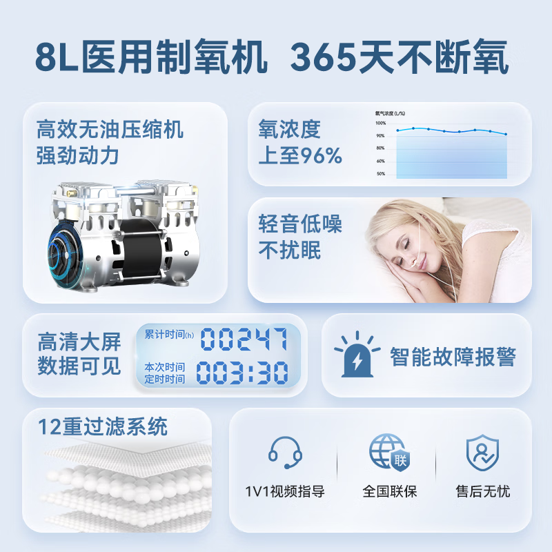 海龟V8系列8L大流量医用级制氧机老人氧气机家用双人吸氧8L大流量吸氧机V8-WN-NS价格:8999.00元!