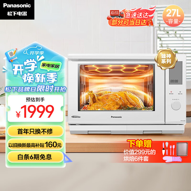松下(Panasonic)蜂神系列NN-DS2200XPE 27升变频微波炉 微蒸烤炸一体机蜂巢顶聚热旋钮操作智能APP(WIFI)价格:2299.00元!