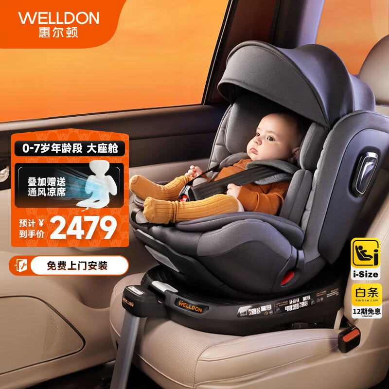 惠尔顿(Welldon)儿童座椅 0-7岁 360度旋转 i-Size认证 四大智能监测 智转PRO价格:2479.00元!