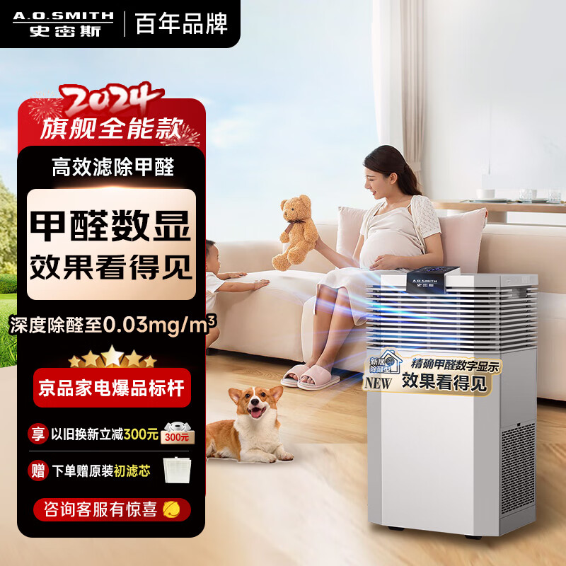 史密斯(A.O.SMITH)除甲醛空气净化器家用 分解除醛除菌除异味PM2.5除过敏原雾霾 JF1568 卧室优选 【京东小家智能】价格:3498.00元!