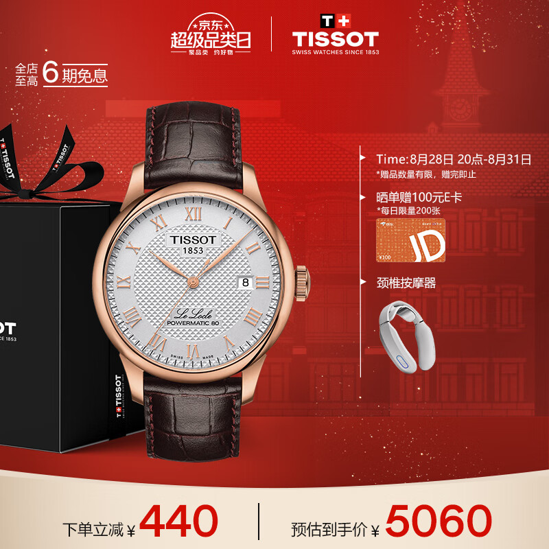 天梭(TISSOT)瑞士手表 力洛克系列腕表 皮带机械男表 T006.407.36.033.00价格:5500.00元!