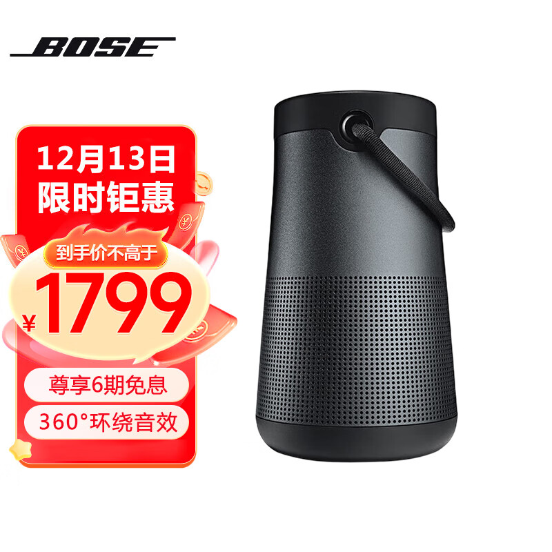 Bose Soundlink Revolve/Revolve+ II蓝牙音响 360度环绕防水无线音箱电脑桌面音响IP55防水防尘长续航 大水壶 黑色价格:2049.00元!