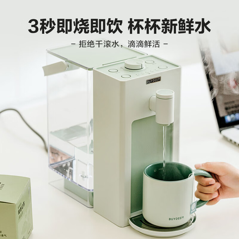 2、这个即饮水机被同事~种草,A4纸的大小和多档位温度调节让我非常心动,选了一款跟家里家具风格比较贴近的水墨灰色,还挺满意的,之前买过北鼎浅草绿那款加热杯垫给家人,反馈说很好用,希望这个即饮水机也能收获家人好评