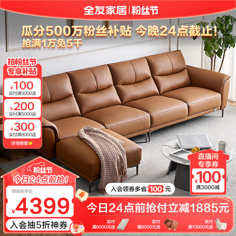 全友家居 皮艺沙发客厅现代简约头层牛皮直排一字真皮沙发家具112011价格:6284.29元!