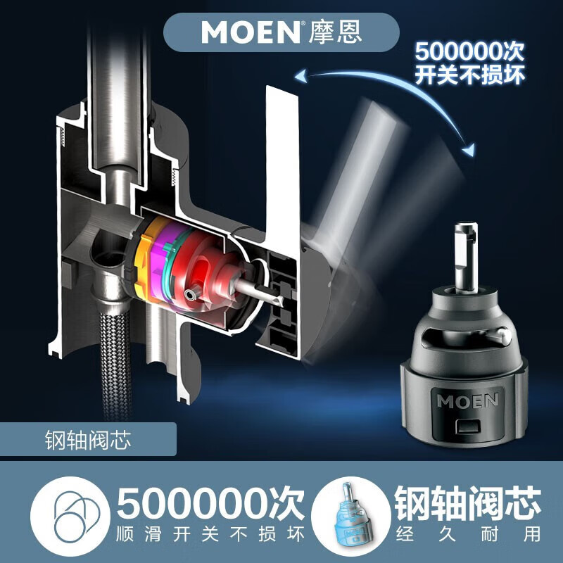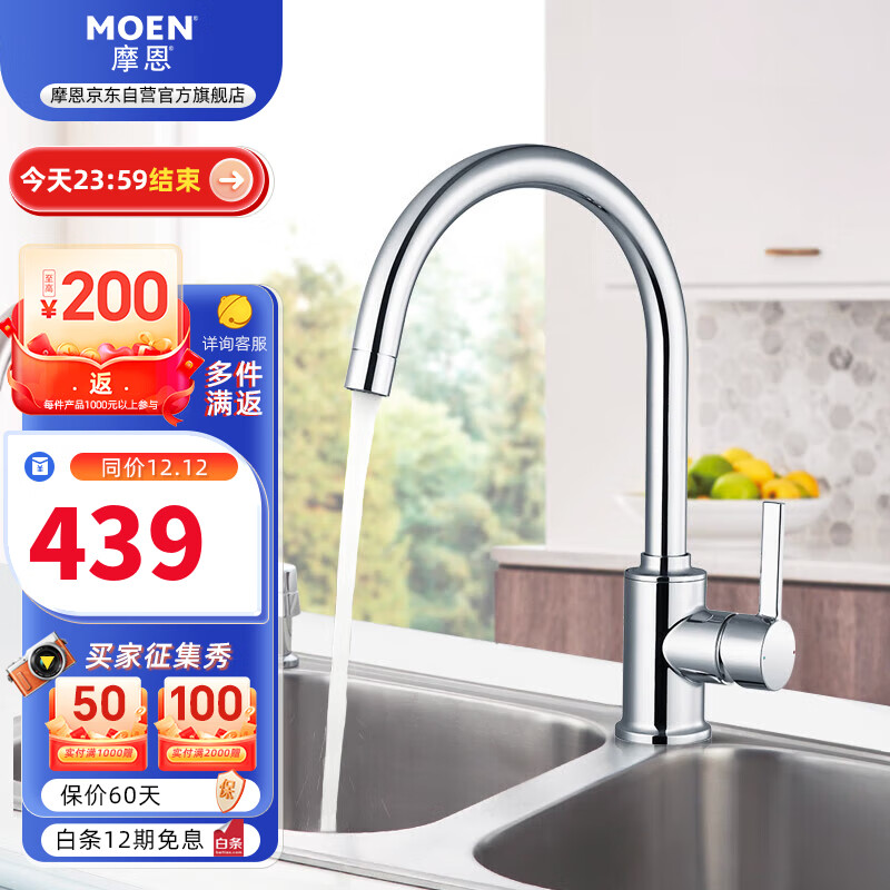 摩恩(MOEN)厨房冷热水龙头 净铅高抛龙头 水槽洗菜盆洗碗盆防飞溅水龙头价格:489.00元!