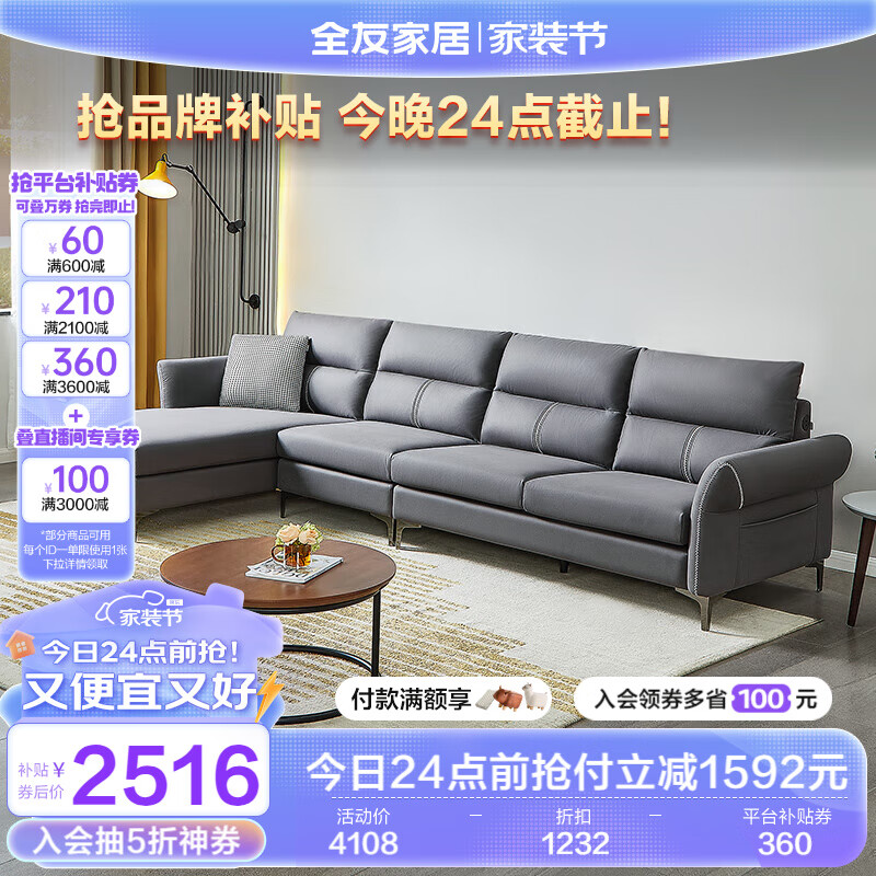 全友家居 现代简约功能科技布艺可拆洗储物转角贵妃沙发客厅102679价格:4108.57元!