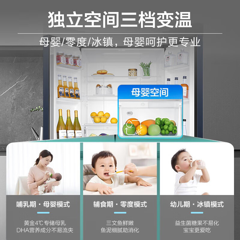 1、非常喜欢这款冰箱的颜色!容量也很大!四门设计!用起来非常方便!制冷效果很好!风冷无霜!果蔬保鲜时间也长!价格也实惠!性价比超高!