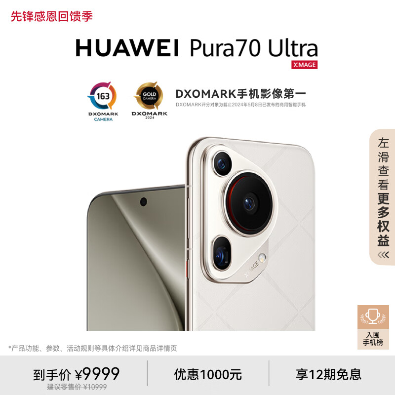HUAWEI Pura 70 Ultra 星芒白 16GB+1TB 超聚光伸缩摄像头 超高速风驰闪拍 华为P70智能手机价格:9999.00元!