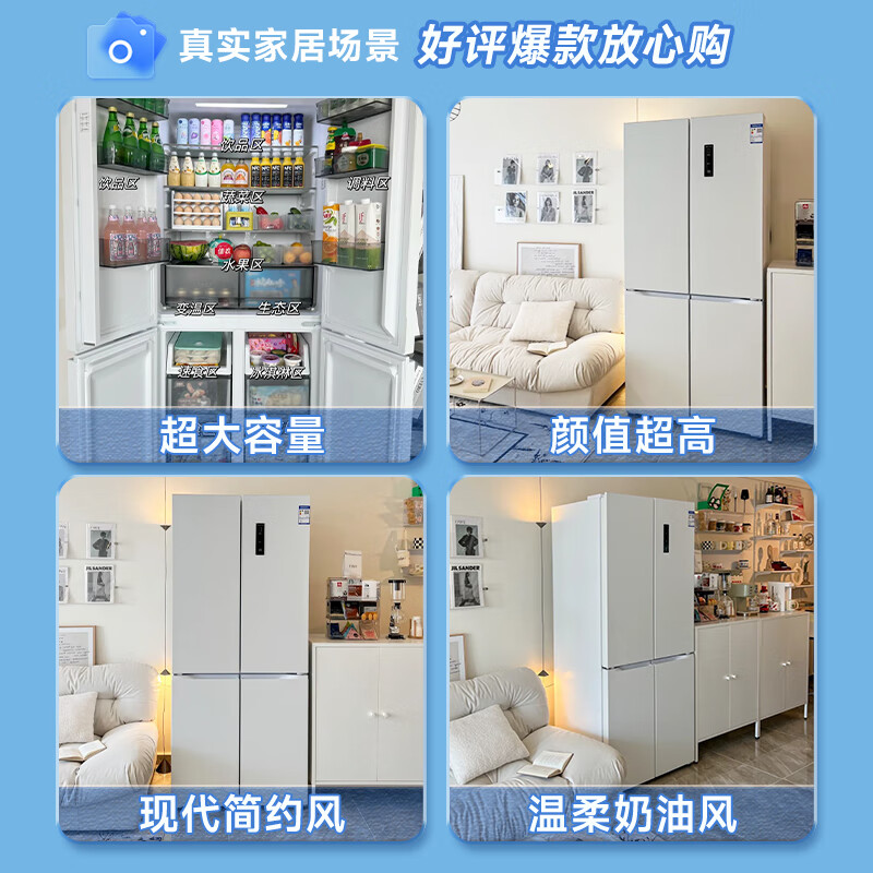 2、冰箱大气,好看,超静音,省电。制冷效果:特别好制冷,家用超实惠