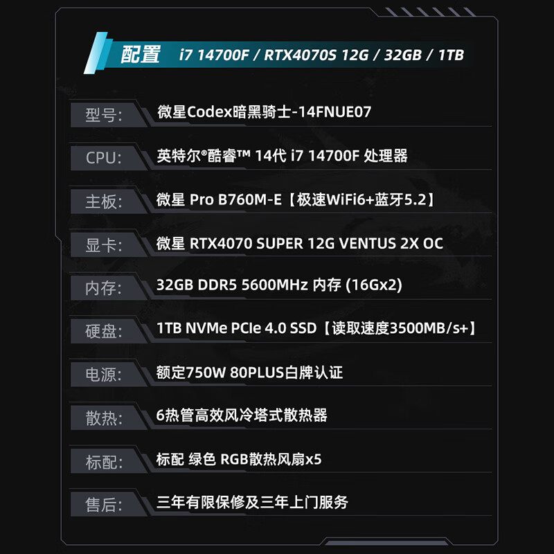 商品名称:微星Codex暗黑骑士