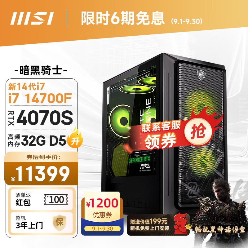 微星(MSI)暗黑骑士MAG 14代i7 14700F/RTX4070S/32G DDR5/1TSSD电竞游戏设计师台式电脑主机diy组装整机价格:12599.00元!