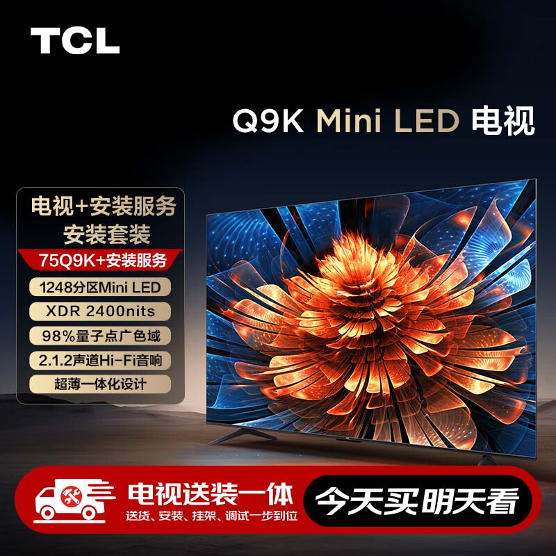 TCL【送装一体版】安装套装-75Q9K 75英寸 Mini LED电视 Q9K+安装服务含挂架价格:6999.00元!