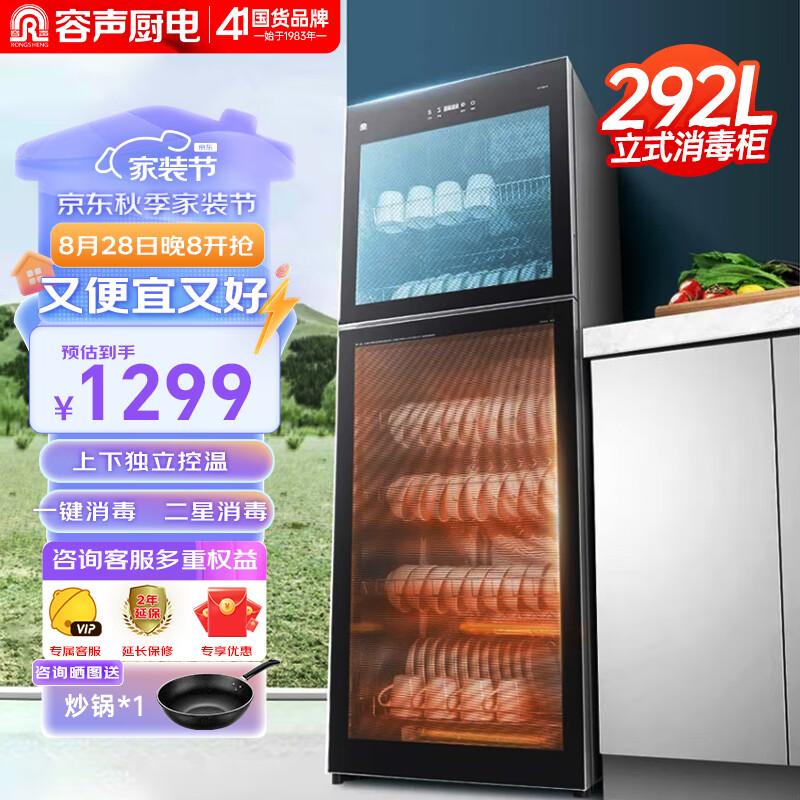 容声(RONGSHENG)消毒柜家用 立式消毒碗柜 大容量 商用消毒柜 双门台式餐具厨房碗筷消毒柜380-RQ230(A)价格:1299.00元!