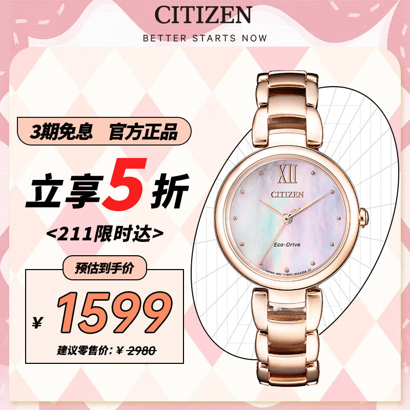 西铁城(CITIZEN)手表女日韩表L系列光动能贝母盘钢带时尚送礼物EM0533-82Y价格:1749.00元!