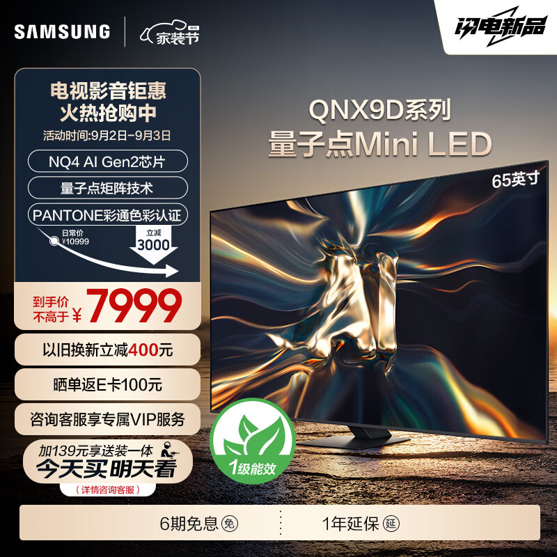 三星(SAMSUNG)65QNX9D 65英寸 Neo 量子点 Mini LED AI电视 120Hz高刷 QA65QNX9DAJXXZ 北京以旧换新一级能效价格:7999.00元!