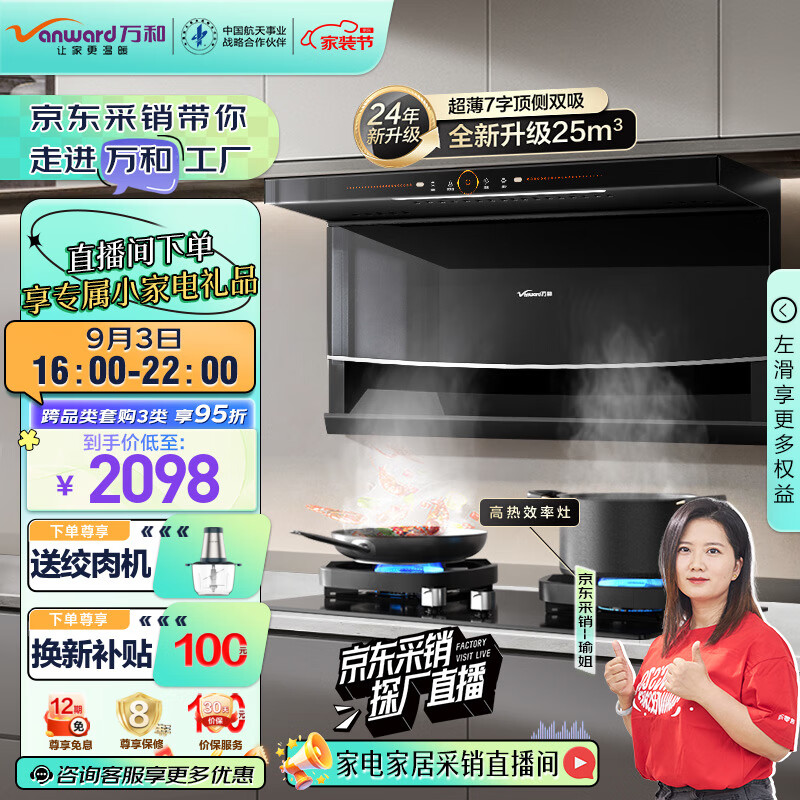 万和(Vanward)顶侧双吸7字型家用抽油烟机 68%高热效燃气灶具烟灶套装 25m3/min大吸力WL856+G6L50(液化气)价格:2098.00元!