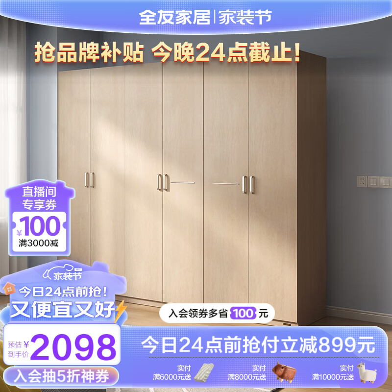 全友家居 家用现代简约成品衣柜组合卧室衣橱立柜简易储物柜子106302价格:2997.14元!