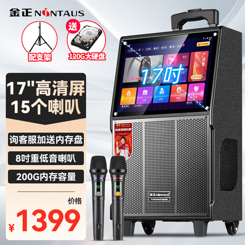 金正N8-96广场舞音响带显示屏家庭ktv视频一体机家用户外k歌卡拉ok功放移动蓝牙音箱点歌机唱歌乐器价格:1399.00元!