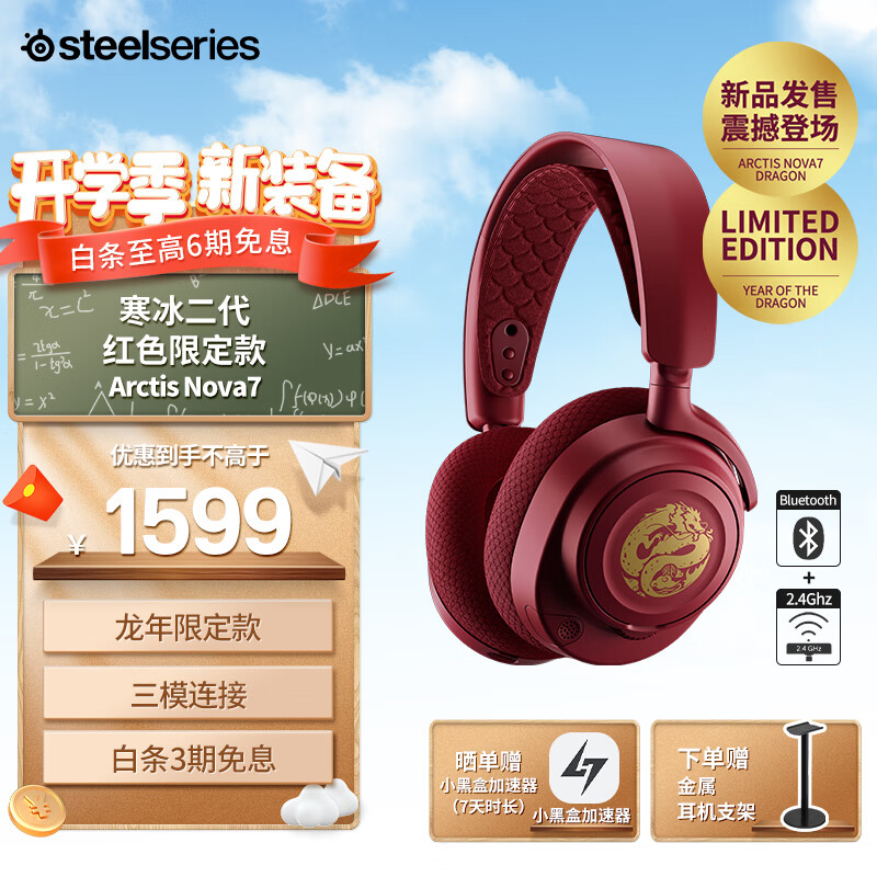 赛睿(SteelSeries)Arctis寒冰Nova7 红色限定款 电竞游戏耳机 头戴式 无线蓝牙三模连接吃鸡神器听声辨位降噪麦克风价格:1599.00元!