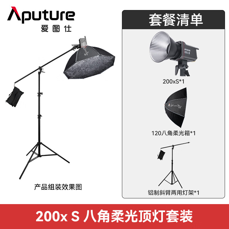 爱图仕(Aputure)艾蒙拉 200 S系列视频美颜直播补光灯摄影棚200w人像外拍照灯摄影灯 200x S 八角柔光顶灯套装价格:3397.00元!