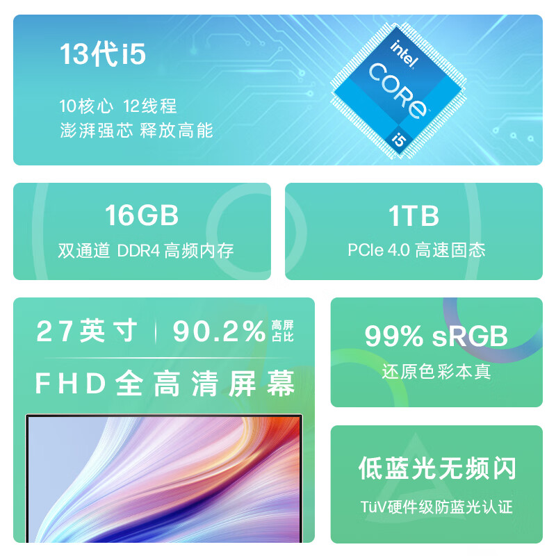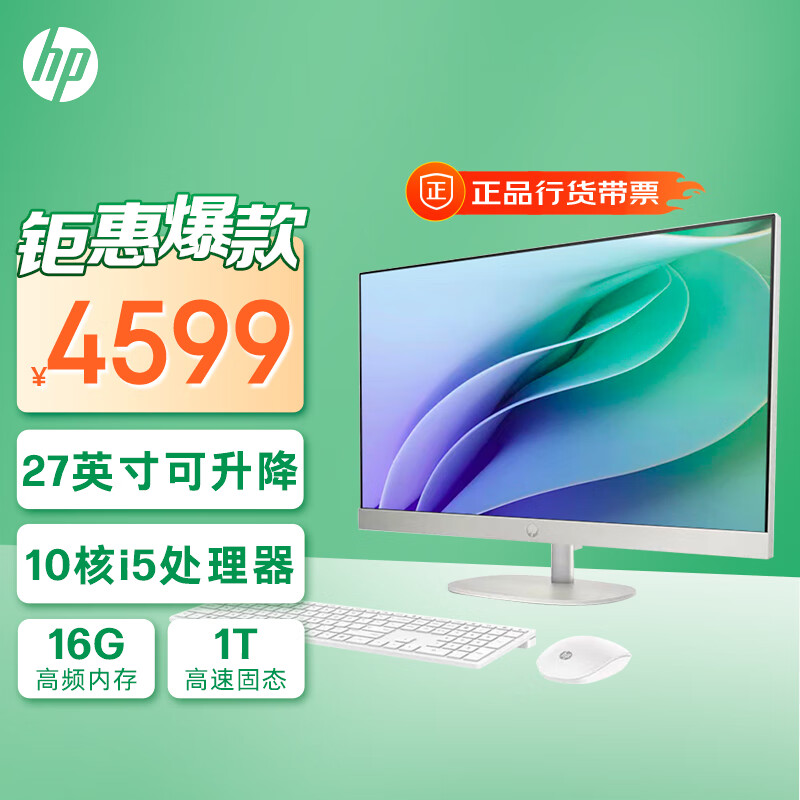 惠普HP 星One系列高清一体机电脑27英寸(13代酷睿i5-1335U 16G 1TB固态硬盘 注册升级三年上门)高色域价格:4599.00元!