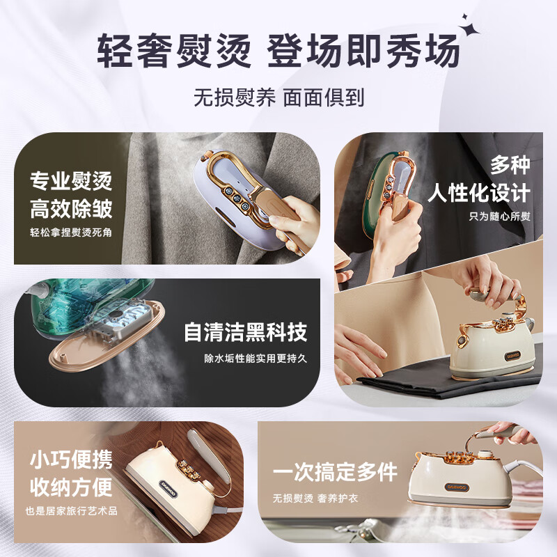 大宇(DAEWOO)挂烫机家用熨烫机电熨斗 小星斗手持挂烫机蒸汽熨斗熨衣机 旅游出差便携式小型除菌HI-036 赫本绿价格:479.00元!