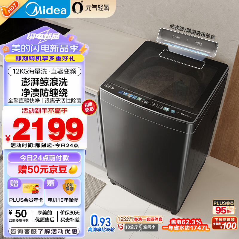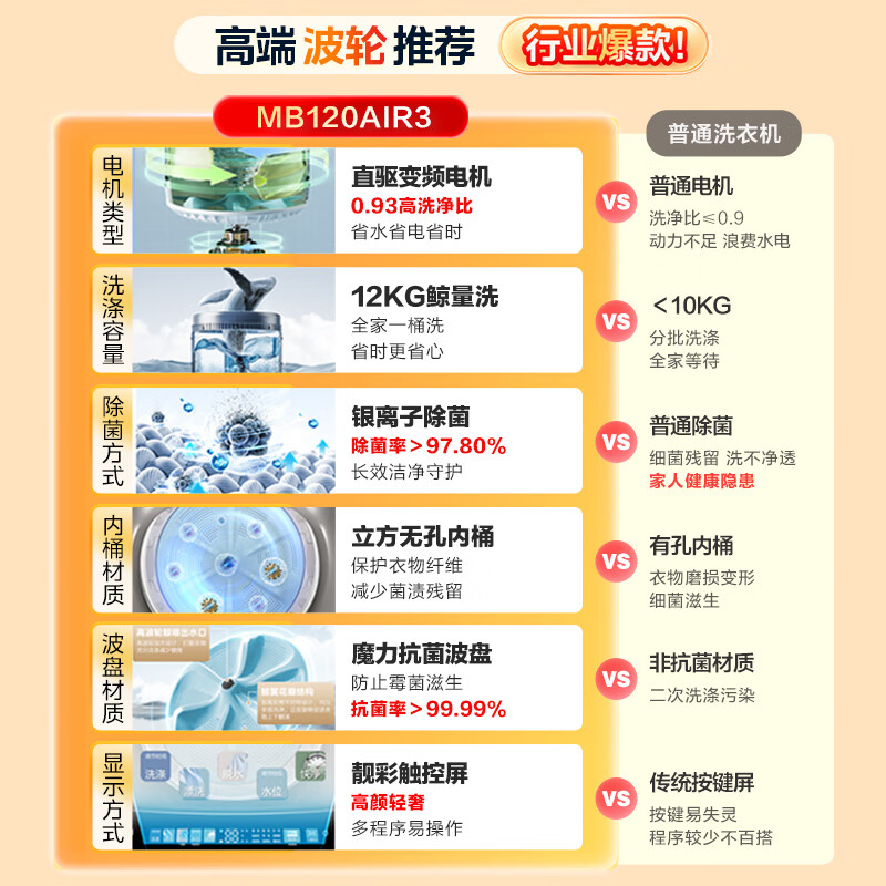 美的(Midea)波轮洗衣机全自动家用 MB120AIR3 12公斤大容量 元气轻氧系列 直驱变频 银离子活性除菌 健康除螨价格:2128.00元!