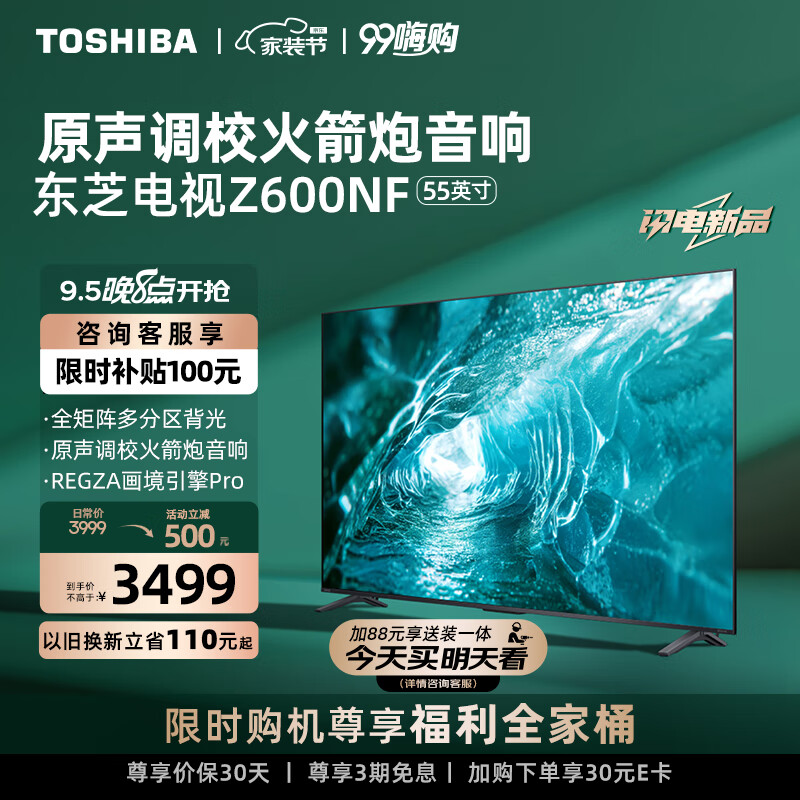 东芝电视55Z600NF 55英寸 全矩阵多分区背光 火箭炮音响 4K144Hz超清液晶智能平板游戏电视机 以旧换新价格:3499.00元!