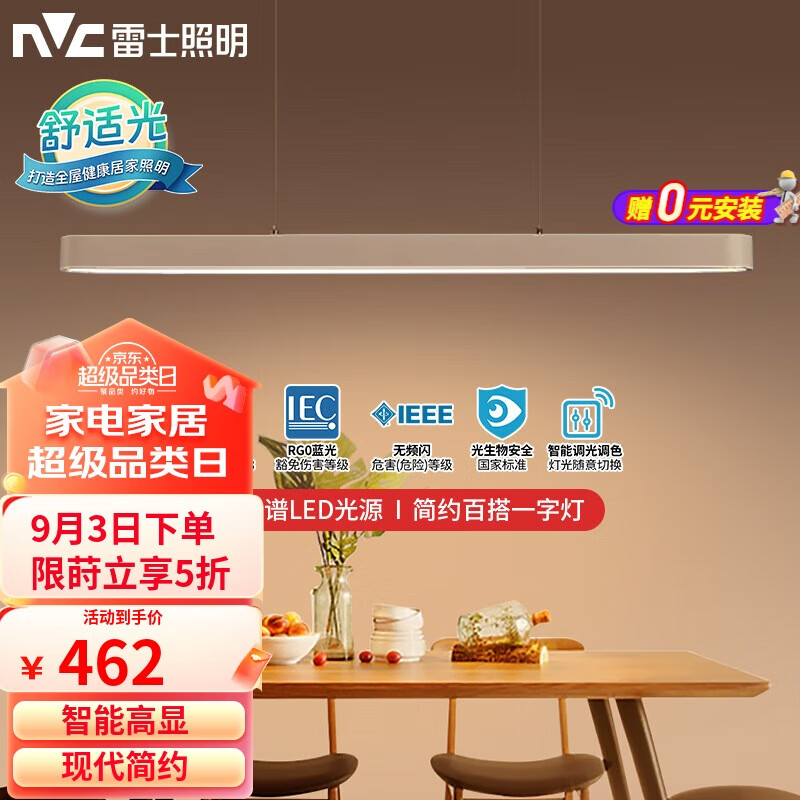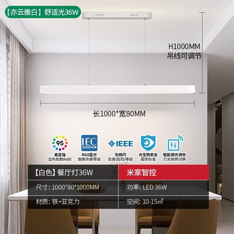 雷士(NVC)一字灯餐厅灯智能高显指吸顶吊灯简约长条灯具雅白WHDD36F/G-01价格:924.00元!