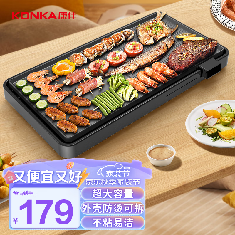 康佳(KONKA)电烧烤炉 家用韩式铁板烧烤肉机烧烤架无烟电烤盘烤肉炉烤肉锅 不粘电烤炉 KEG-W190A价格:179.00元!