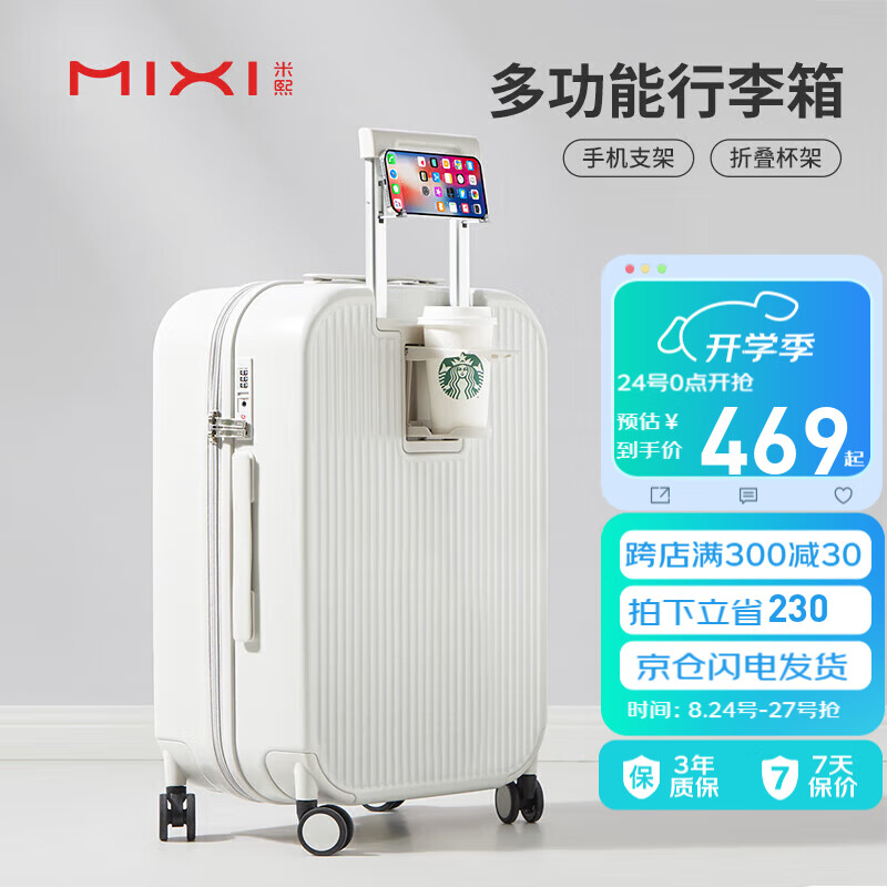 米熙多功能拉杆箱子行李箱大容量26英寸学生旅行箱男密码箱女烟白90价格:699.00元!