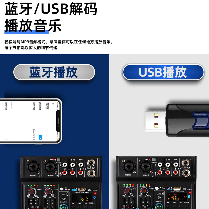 depusheng专业4路调音台 电脑录音小型家用KTV唱歌视频会议直播收音K歌USB声卡蓝牙8路U盘均衡混响无线话筒 M4 USB声卡调音台价格:233.00元!