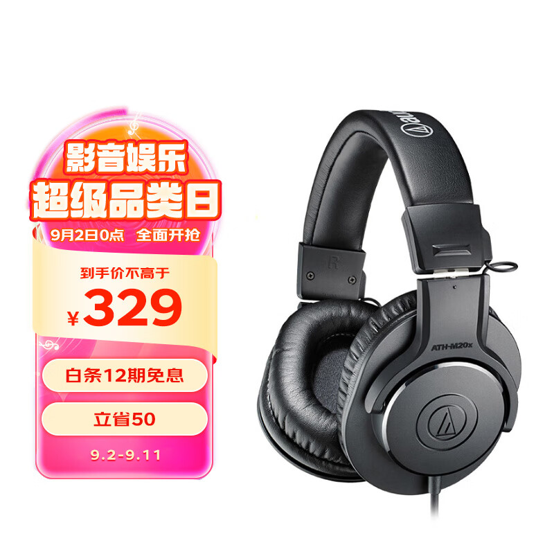 铁三角(Audio-technica)ATH-M20x 入门级专业监听头戴式耳机价格:379.00元!