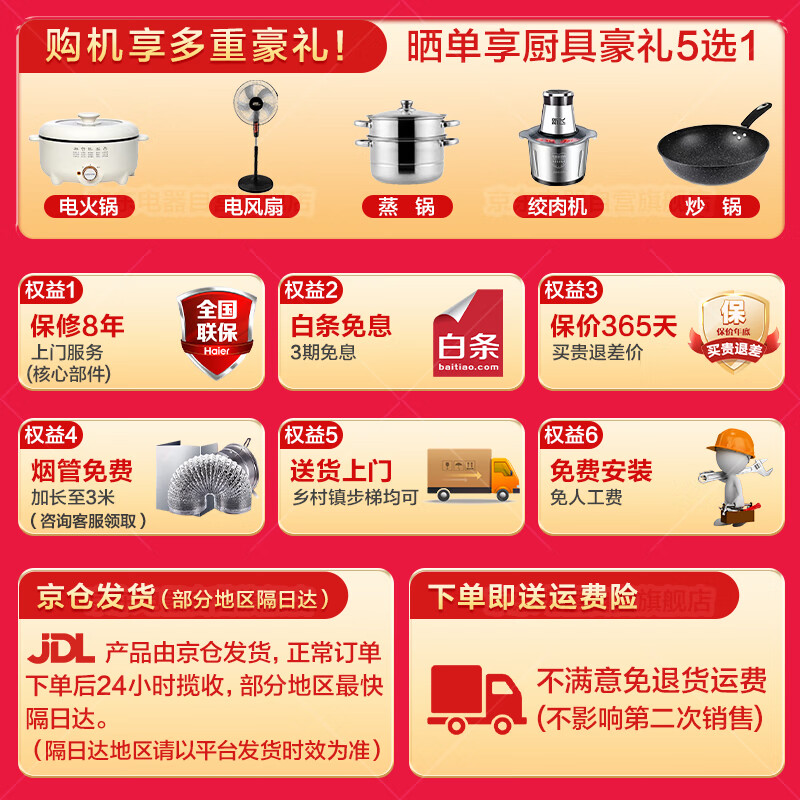 4、宝贝收到了质量非常的好,海尔售后就是好,第二天工人师傅就给安装上了,态度非常好!给好评!以后买家电就买海尔的,家里的热水器海尔的,冰箱海尔的,抽油烟机又买的海尔的!