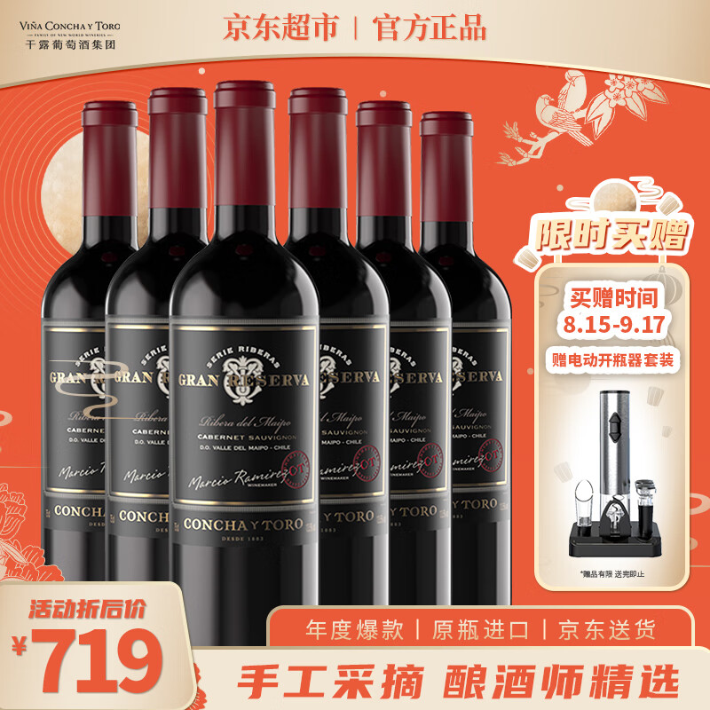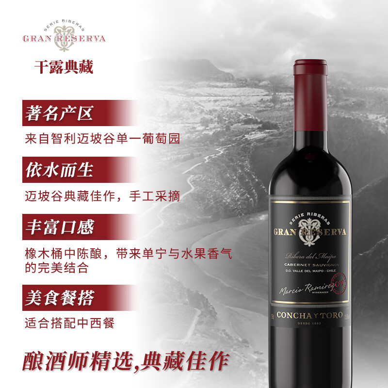 Concha y Toro干露典藏酿酒师之选干红葡萄酒750ml*6瓶整箱 手工采摘进口红酒价格:719.00元!