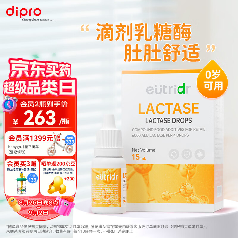 迪辅乐(dipro)怡萃多乳糖酶(复配酶制剂)15ml 婴幼儿宝宝乳铁蛋白免疫消化酶滴剂不耐受拉肚肚 0岁可用价格:229.00元!