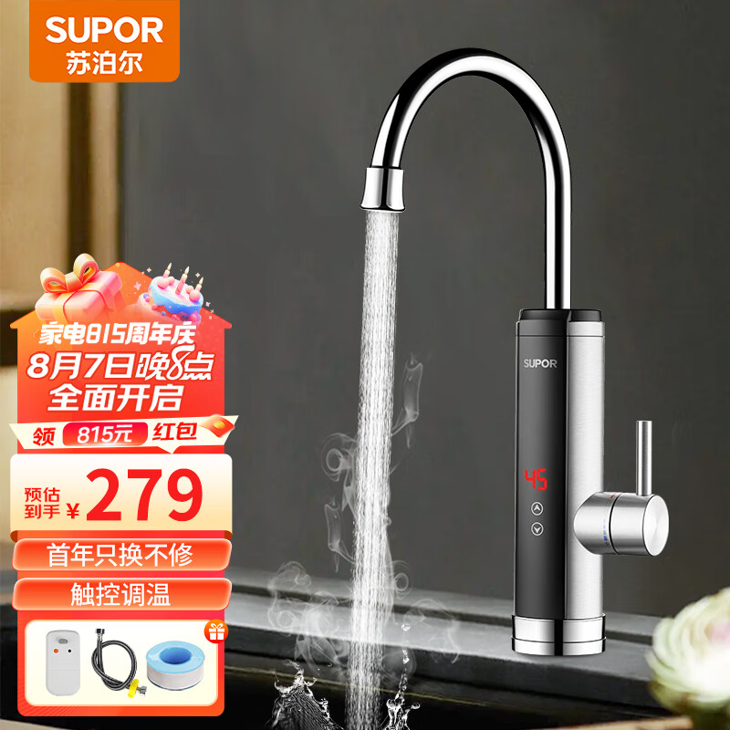 苏泊尔(SUPOR)电热水龙头不锈钢机身即热式速热加热厨宝快速电热水器变频恒温款273047-01TLS价格:279.00元!
