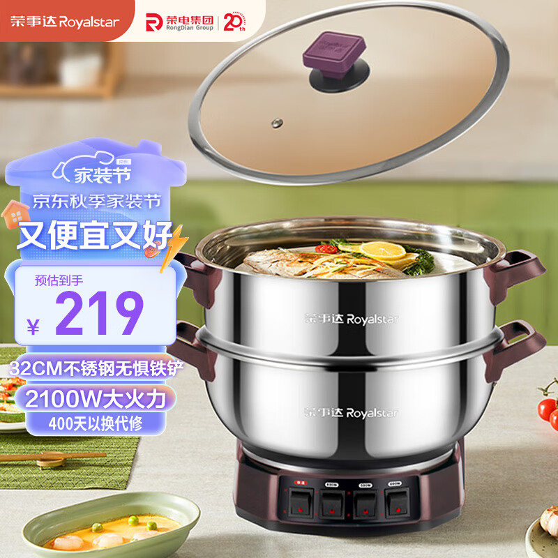 荣事达(Royalstar)电炒锅多功能家用铸铁锅山东锅电炒菜炒锅一体式不粘锅大功率蒸煮锅电热锅电火锅RDG-ZH32B单笼价格:219.00元!