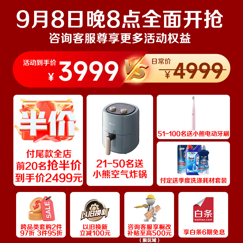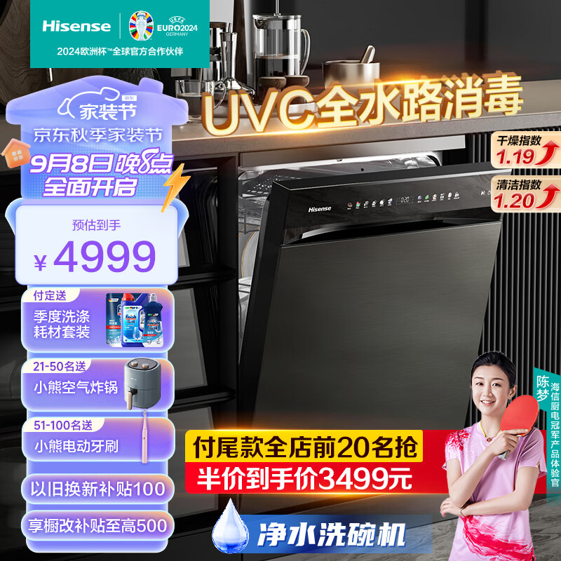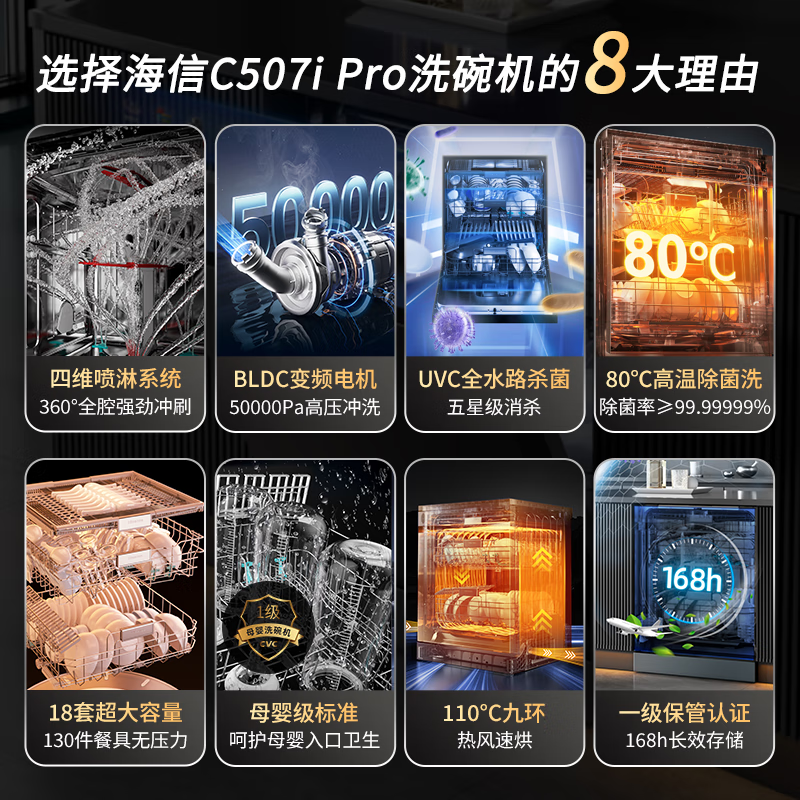 海信(Hisense)18套变频嵌入式洗碗机彩屏超一级水效110℃热风家用大容量全自动净水洗碗机新品C507iPro价格:4999.00元!
