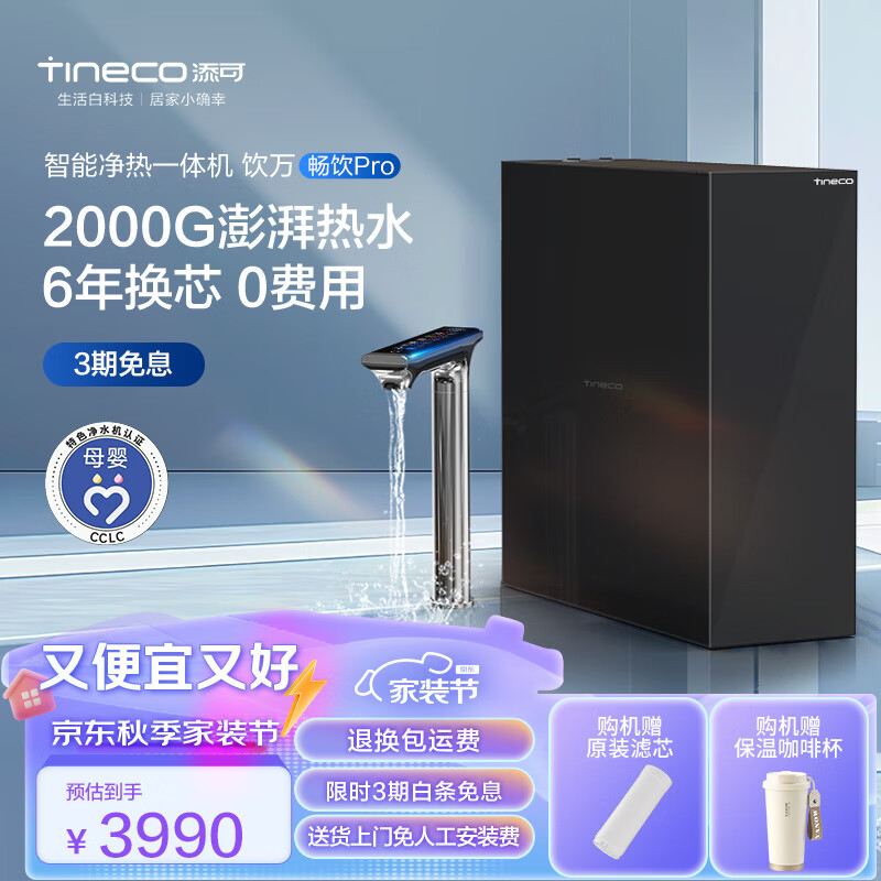 添可(TINECO)加热净水器饮万畅饮Pro 等效2000G大流量净热一体机 厨下式净水器家用RO反渗透1000G价格:3990.00元!